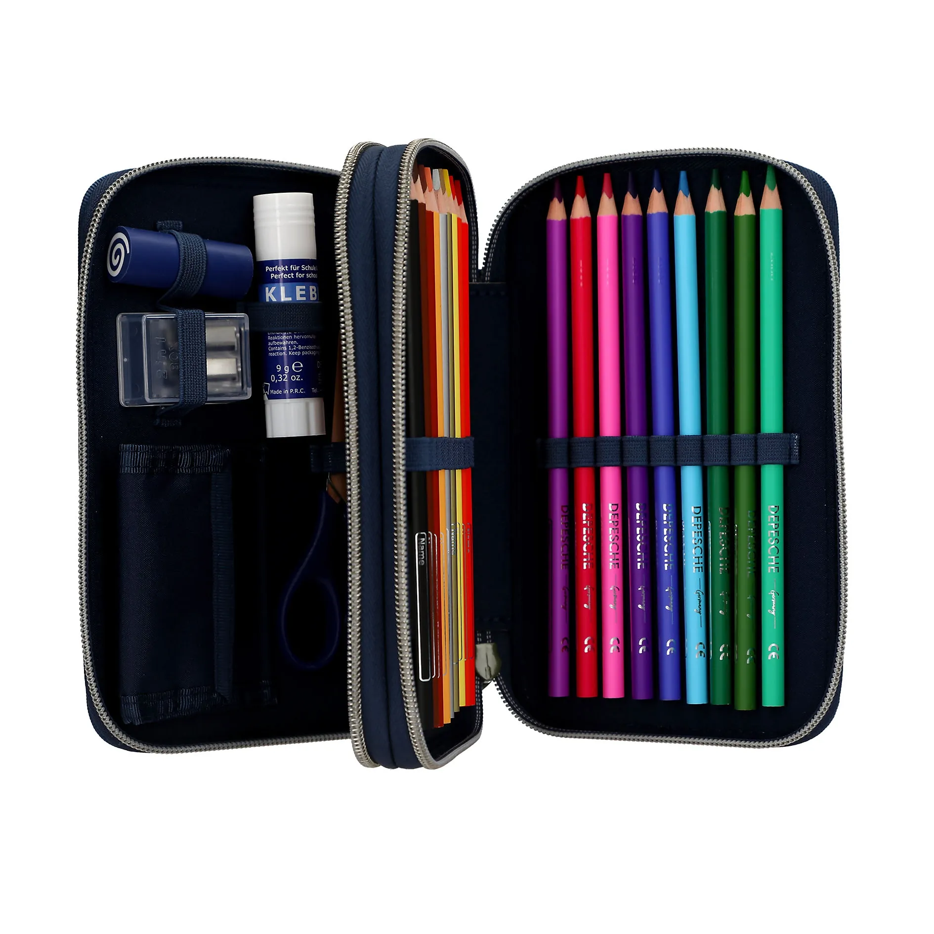 Der größte Vorteil dieser Federtasche ist ihre Vollausstattung. Man muss sich keine Gedanken über fehlendes Zubehör machen, denn sie kommt bereits komplett gefüllt nach Hause. Im Inneren erwartet die Schüler eine bunte Vielfalt und nützliche Werkzeuge für den Unterricht: