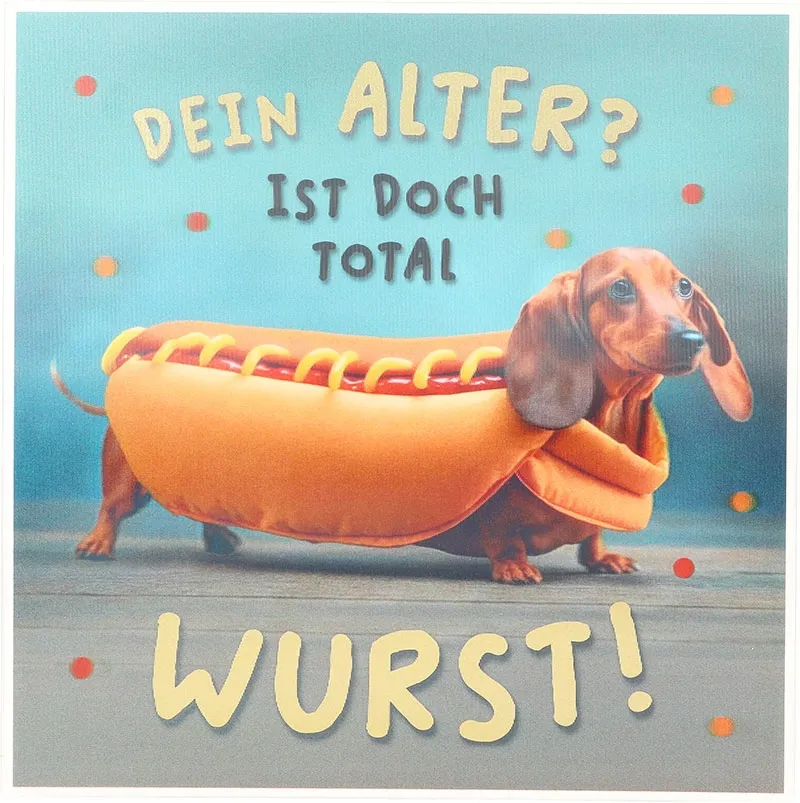 Schon das Cover sorgt für ein Schmunzeln, denn ein süßer Dackel steckt in einem Hotdog-Kostüm. Dadurch entsteht ein originelles und lustiges Bild, während der Spruch „Dein Alter ist doch total Wurst!“ die humorvolle Botschaft perfekt ergänzt. Gleichzeitig bringen die bunten Punkte im Hintergrund zusätzliche Leichtigkeit ins Design, sodass das Gesamtbild lebendig und modern wirkt. So entsteht ein erster Eindruck, der sofort begeistert.