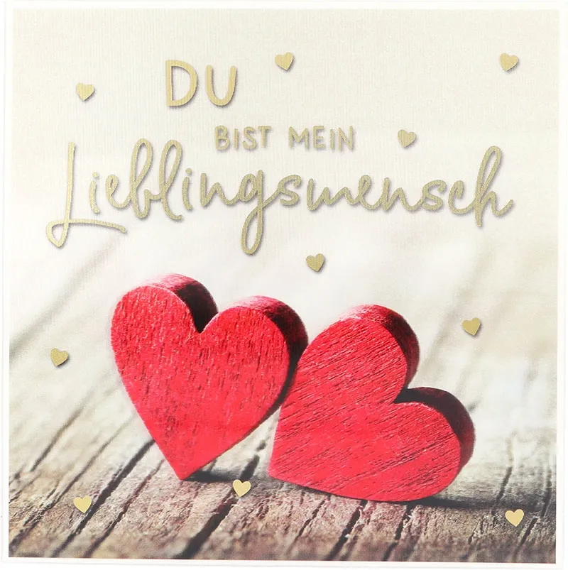 Schon das Cover wirkt sanft und emotional. Zwei rote Herzen aus Holz liegen nebeneinander auf einer natürlichen Oberfläche. Sie symbolisieren Nähe, Vertrauen und tiefe Verbundenheit. Kleine goldene Herzchen schmücken das Motiv zusätzlich und verleihen ihm eine zarte, elegante Note. Der Schriftzug „Du bist mein Lieblingsmensch“ ist klar, liebevoll und ausdrucksstark. Er sagt genau das, was oft schwer in Worte zu fassen ist.
