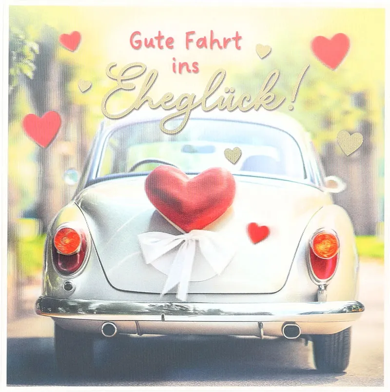 Ein besonderer Anlass verdient eine besondere Botschaft. Und genau hier überzeugt die 3D Musikkarte “Gute Fahrt ins Eheglück!”. Sie verbindet Romantik, Eleganz und Emotion. So überreichen Sie Ihre Glückwünsche auf eine Weise, die im Herzen bleibt.