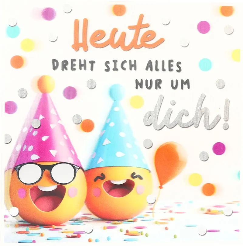 Ein Geburtstag ist der perfekte Moment, um jemanden in den Mittelpunkt zu stellen, und genau dieses Gefühl bringt diese Karte wunderbar zum Ausdruck. Die 3D Musikkarte “Heute dreht sich alles nur um dich!” sorgt für ein echtes Lächeln, denn sie verbindet Humor, Farbe und Emotion auf eine besonders charmante Weise. So schenken Sie nicht nur Worte, sondern auch ein kleines Stück Glück.