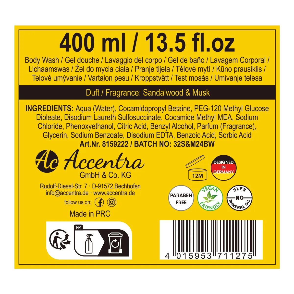 Mit einem großzügigen Inhalt von 400 ml bietet dieses Duschgel langanhaltende Pflege. Dadurch eignet es sich ideal für den täglichen Gebrauch, während es gleichzeitig wirtschaftlich ist. Und dank des praktischen Pumpspenders lässt sich die gewünschte Menge einfach und sauber dosieren.