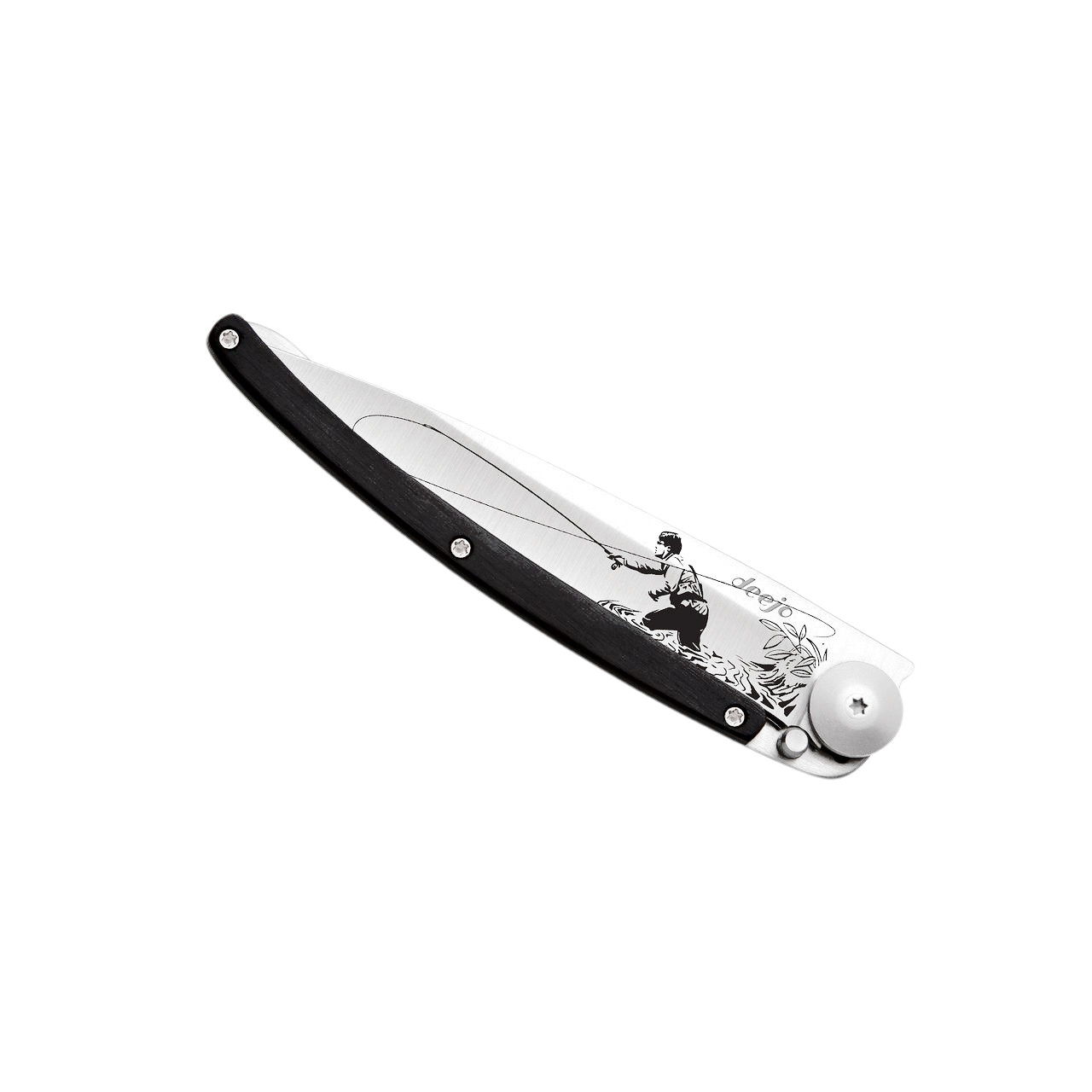 Deejo 37G Taschenmesser “Fliegenfischen” mit Ebenholzgriff und grauem Titan-Finish