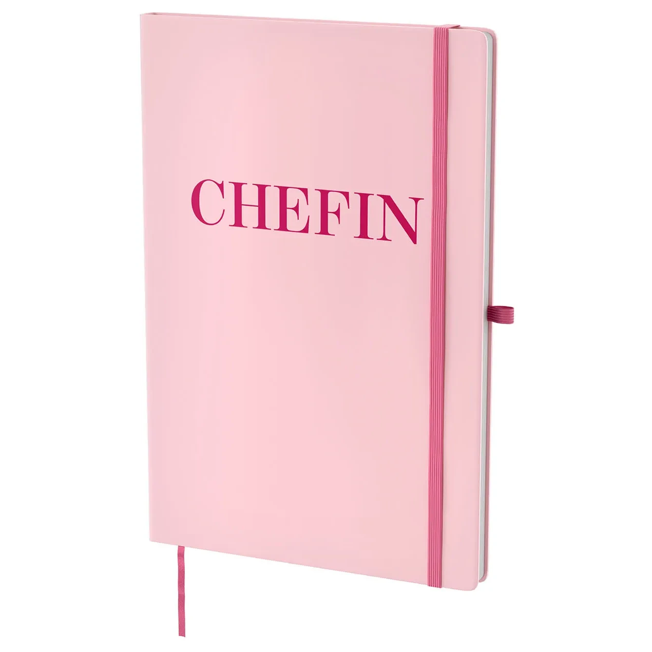 Das minimalistische Design wirkt modern und elegant, denn das zarte Rosé strahlt Ruhe aus, während der kräftige Schriftzug „Chefin“ klare Stärke vermittelt. So entsteht eine harmonische Kombination, die sowohl feminin als auch souverän wirkt, und genau deshalb passt dieses Notizbuch perfekt in Ihren beruflichen und privaten Alltag.
