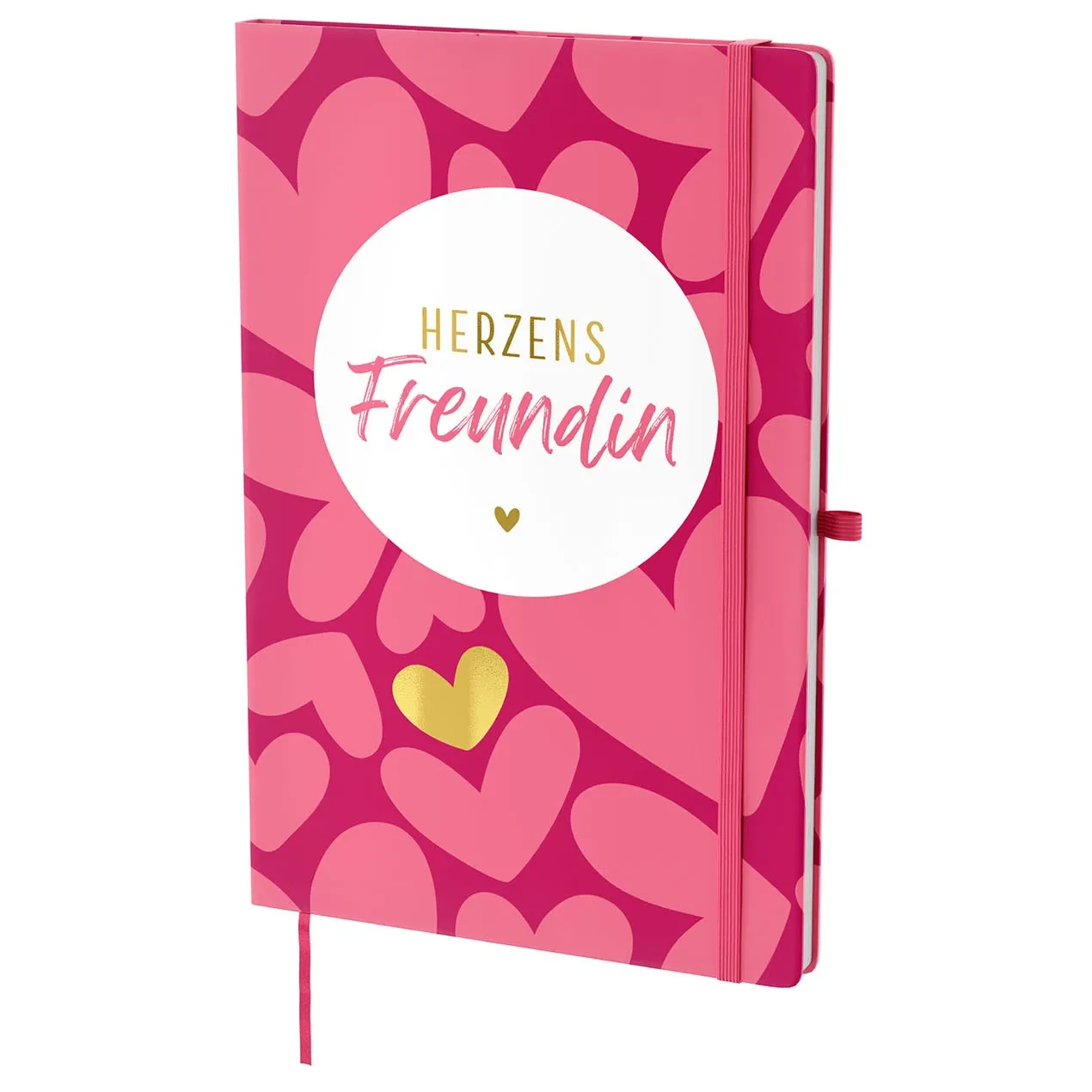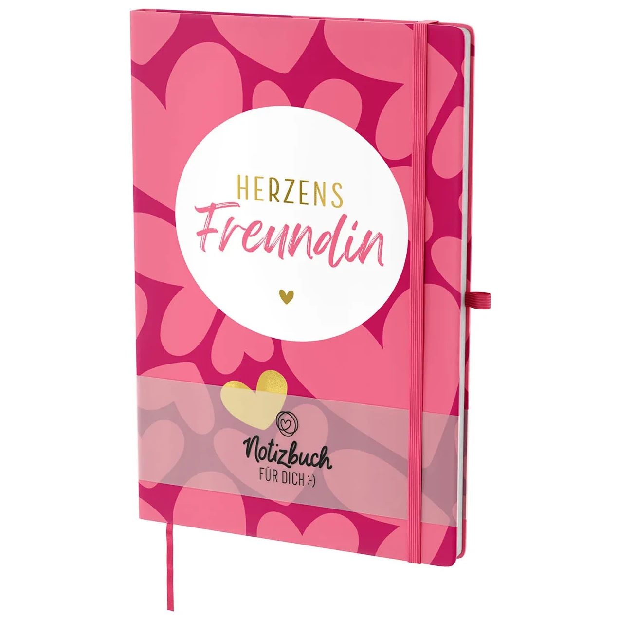 Das liebevolle Design fällt sofort ins Auge, denn die kräftigen Pinktöne wirken lebendig und warm zugleich. Die vielen Herzmotive verleihen dem Notizbuch eine verspielte Leichtigkeit, während die goldenen Details elegante Akzente setzen. Und so entsteht ein harmonisches Gesamtbild, das modern wirkt und gleichzeitig emotional berührt.