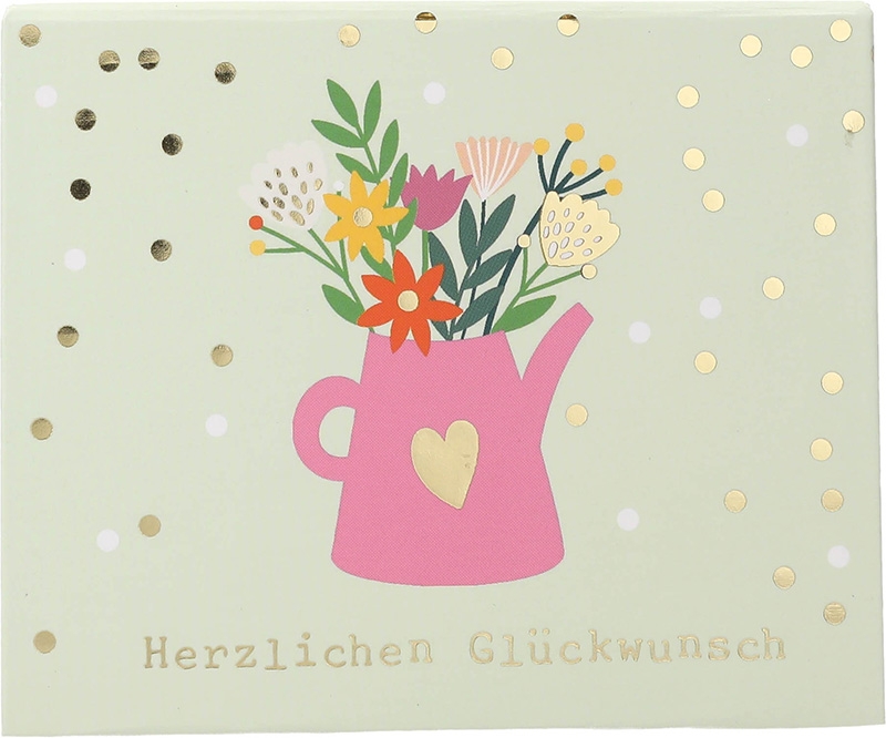 Die äußere Gestaltung der Soundbox ist ebenso charmant wie der Inhalt. Ein fröhlicher Blumenstrauß ziert die Oberfläche und verleiht der Schachtel eine fröhliche Ausstrahlung. Der Spruch Herzlichen Glückwunsch” rundet das Design ab und lässt die Box zu einem echten Blickfang werden. Auch im Inneren des Deckels finden Sie die passende Aufschrift: “Heute ist dein Tag” – eine Einladung, die mit einem Augenzwinkern zum Feiern und Genießen animiert.
