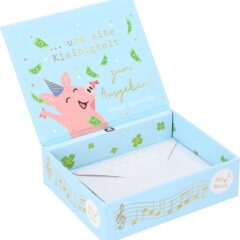 Mit dieser kleinen schönen Geschenkschachtel machen Sie alles Richtig. Diese kleine Geschenkschachtel, aus stabiler Pappe, hat einen besonderen Inhalt. Im Inneren befindet sich ein kleiner Umschlag in dem Sie etwas “Kleingeld” , einen Gutschein oder einen lieben Gruß für das Geburtstagskind verpacken können. Natürlich ist auch noch etwas Platz für ein kleines Geschenk.