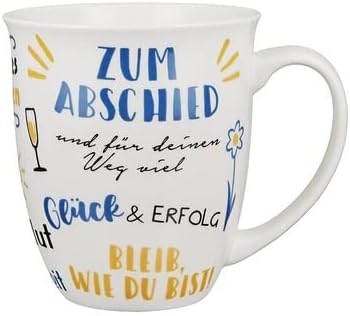 Die Jumbotasse „Zum Abschied“ ist nicht nur ein praktischer Begleiter, sondern auch eine wunderbare Möglichkeit, jemandem zu zeigen, wie besonders er oder sie ist. Mit ihrem humorvollen und liebevollen Schriftzug „Zum Abschied und weiteren tollen Bemerkungen: – und für deinen Weg viel Glück & Erfolg – Bleib, wie du bist – Liebe – Mut – Gesundheit – Spaß – wir waren ein tolles Team – Freude – Kraft – Erfolg – Lass es krachen – War eine coole Zeit – Danke! – auf der Außenseite ist diese Tasse ein wahrer Blickfang und sorgt sofort für gute Laune.