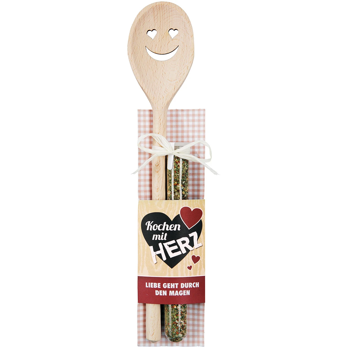 Der hochwertige Kochlöffel aus naturbelassenem Holz wird in Deutschland gefertigt und überzeugt durch seine stabile Verarbeitung sowie seine angenehme Haptik. Das ausgestanzte Smiley mit Herzaugen sorgt sofort für gute Laune, während es zugleich zeigt, wie viel Liebe im Kochen steckt. Ergänzt wird dieses Design durch den liebevollen Schriftzug auf der Geschenkverpackung: „Kochen mit Herz – Liebe geht durch den Magen“. Diese Worte treffen ins Herz, denn sie passen perfekt zu gemeinsamen Mahlzeiten, zu liebevoll gedeckten Tischen und zu Momenten, die man gerne teilt.