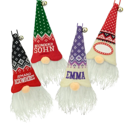 - Die Magie der Personalisierung: Das Herzstück dieser Wichtel ist die individuelle Bestickung. Sie sind personalisiert mit den Namen Ihrer Liebsten oder allgemeinen, festlichen Titeln (z.B. Mama, Papa, Schwester, Opa, Sohn, Jemanden Besonderes oder Namen). So wird jeder Wichtel zu einem einzigartigen, unverwechselbaren Erinnerungsstück.