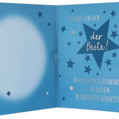 Jedes Alter zählt: Die liebevoll gestalteten Zahlen-Geburtstagskarten sind mit Heißfolie veredelt. Beim Öffnen der Karte ertönt für 30 Sekunden der stimmungsvolle Song: Moves like Jagger