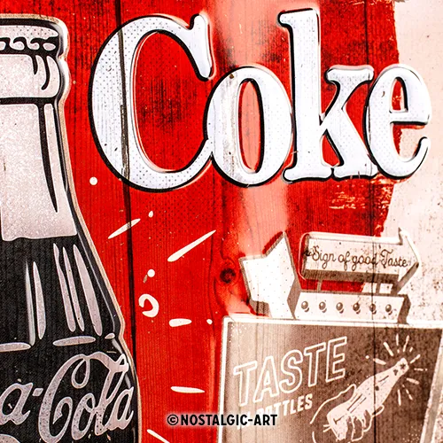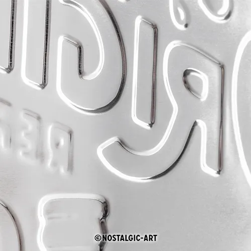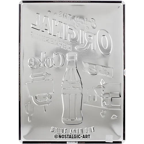 Ein weiteres Highlight ist die detailreiche Motivprägung. Das Design wird auf mehreren Ebenen geprägt. Dadurch entsteht eine beeindruckende dreidimensionale Optik. Licht und Schatten bringen die Konturen besonders schön zur Geltung. So wirkt das Blechschild Coca-Cola Original lebendig und plastisch. Gleichzeitig erhält das Motiv eine besondere Tiefe, die man sehen und fühlen kann.