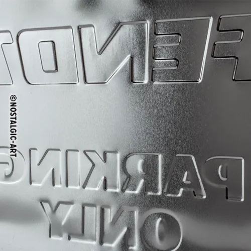 Ein weiteres Highlight ist die detailreiche Motivprägung. Das Design wird auf mehreren Ebenen geprägt. Dadurch entsteht eine beeindruckende dreidimensionale Optik. Licht und Schatten betonen jede Linie und jede Schrift. So wirkt das Blechschild Fendt Parking Only lebendig, plastisch und besonders hochwertig.