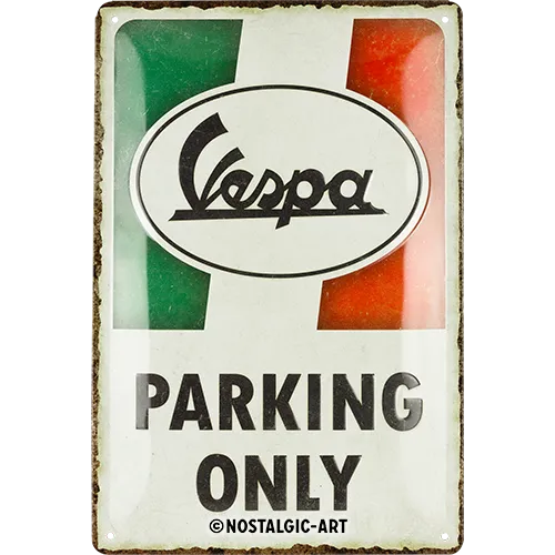 Blechschild Vespa Parking Only: Ein Stück italienisches Lebensgefühl für Ihr Zuhause