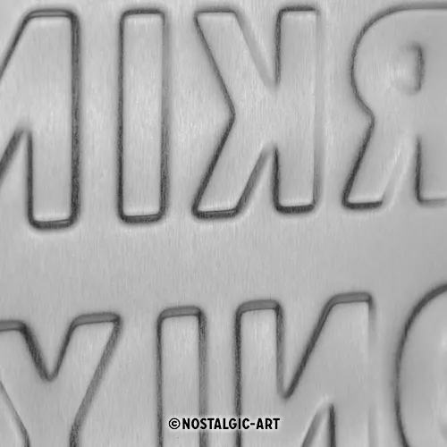 Das Besondere an diesem Schild ist die detailreiche Motivprägung auf mehreren Ebenen. Das Design wird nicht einfach nur aufgedruckt, sondern dreidimensional hervorgehoben. Diese Prägung verleiht dem Schild eine beeindruckende Tiefe und Plastizität, die je nach Lichteinfall variiert. Zusammen mit der leichten Wölbung des Blechs entsteht ein hochwertiges Deko-Objekt, das sich deutlich von flachen Kopien abhebt.