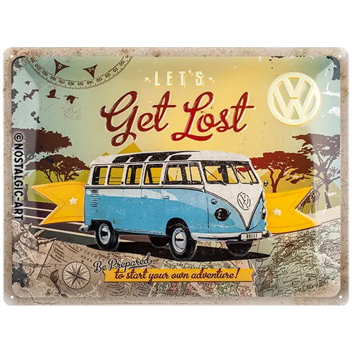 Holen Sie sich das Gefühl von Freiheit, Abenteuer und grenzenloser Weite direkt in Ihr Zuhause. Das Nostalgic-Art Blechschild mit dem legendären VW Bulli und dem inspirierenden Schriftzug „Let’s Get Lost“ ist weit mehr als nur eine Wanddekoration. Es ist eine Hommage an die goldene Ära des Reisens und ein echtes Statement für alle Fans automobiler Klassiker.