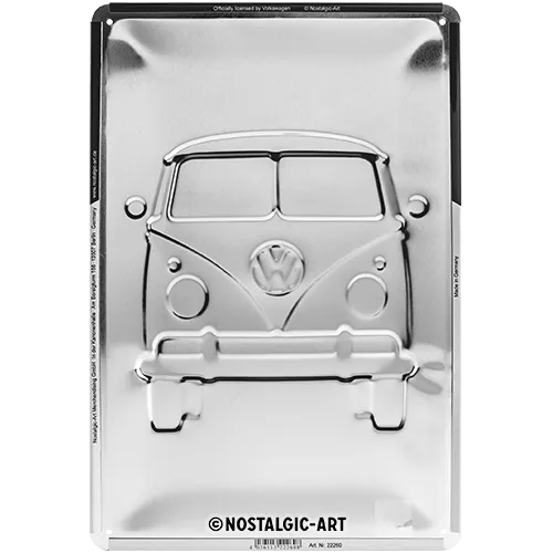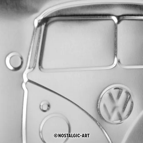 Hinter dem Design steht die Erfolgsgeschichte des VW Bullis, der in den 1950er Jahren als preiswertes und vielseitiges Transportfahrzeug die Herzen der Menschen eroberte. Mit diesem Blechschild holen Sie sich ein Stück dieser Legende nach Hause. Es eignet sich hervorragend als hochwertiges Geschenk für Freunde klassischer Automobile oder als langlebiges Sammlerstück für die eigene Wand.
