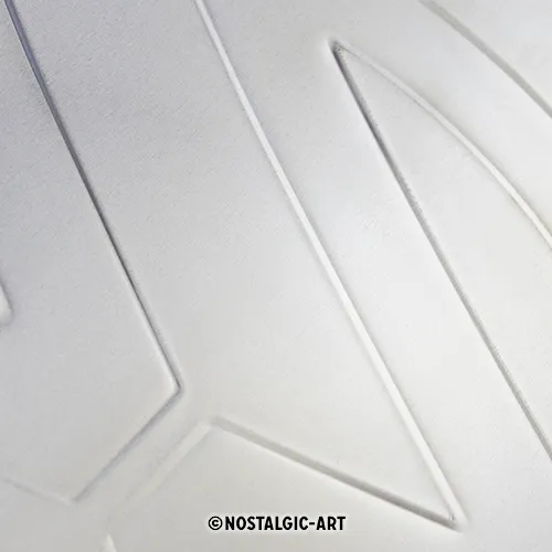 Genau diese Atmosphäre greift dieses dekorative Metallschild auf. Während das ikonische Logo im Mittelpunkt steht, entsteht gleichzeitig eine Verbindung zur langen Geschichte der Marke. Dadurch wird das Schild nicht nur zu einer stilvollen Dekoration, sondern auch zu einem Symbol für automobile Leidenschaft.