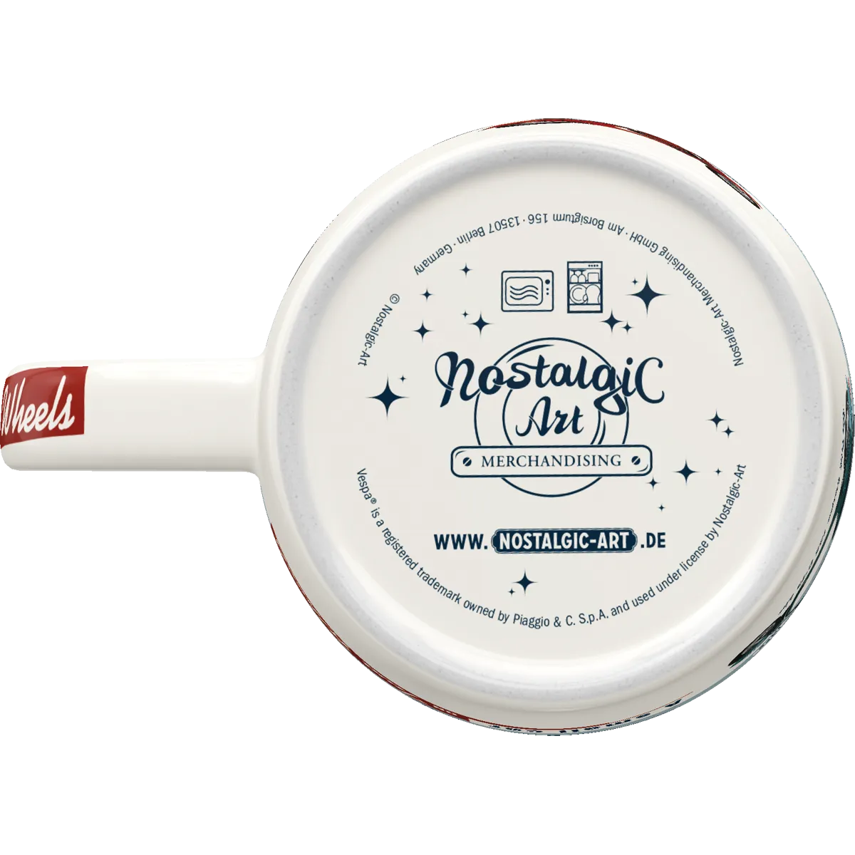 Das Design macht diese Tasse zu etwas ganz Besonderem, denn es erzählt eine Geschichte. In den Farben Weiß, Schwarz, Blau und Rot gehalten, zeigt die Tasse Vespa Model Chart verschiedene Vespa Modelle inklusive ihrer Erscheinungsjahre. Und genau das verleiht ihr einen authentischen, fast schon ikonischen Charakter. Ergänzt wird das Motiv durch das bekannte Vespa Logo sowie durch stilvolle Schriftzüge, sodass ein harmonisches Gesamtbild entsteht. Sogar der Henkel ist dekoriert, wodurch jedes Detail liebevoll gestaltet wirkt.