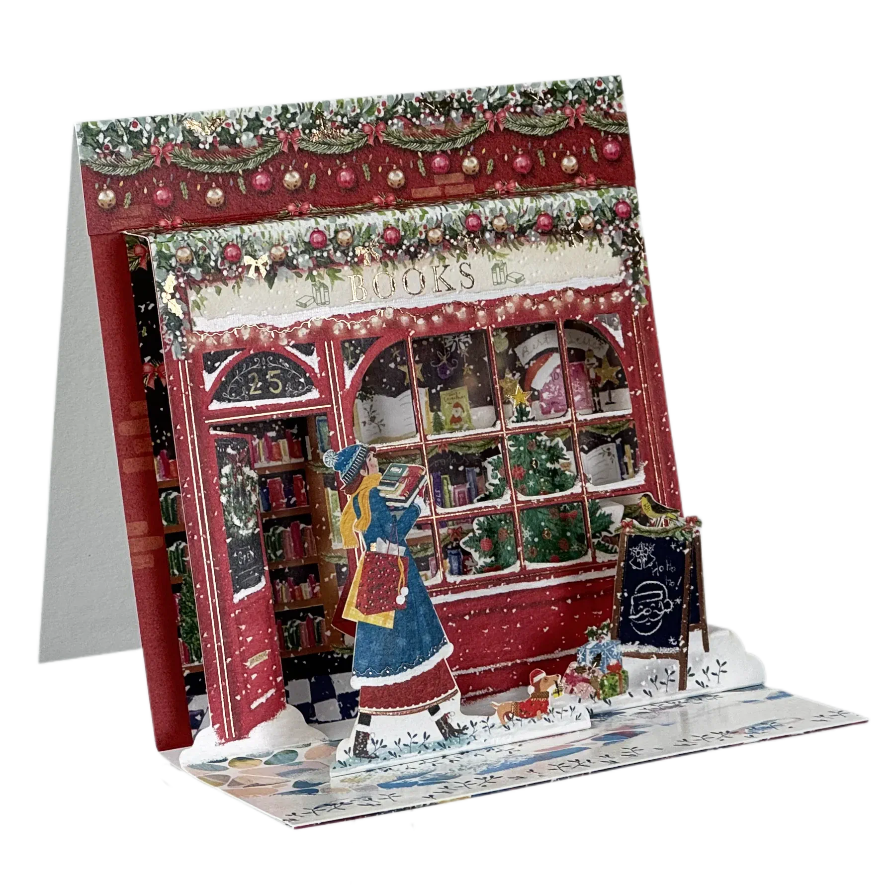 Künstlerische Pop-up-Karte „Buchladen“ – Einzigartiges Miniaturkunstwerk zu Weihnachten
