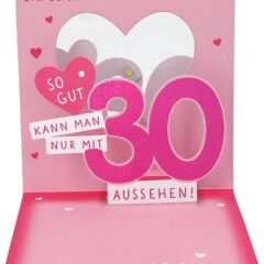 Diese Karte bringt Augen zum Leuchten, Herzen zum Hüpfen – und jede Feier zum Strahlen. Die Pop-up-Musikkarte “30 ist das neue Zwanzig” ist viel mehr als ein Gruß: Sie ist ein echtes Erlebnis. Farben, Musik, Licht und Design verschmelzen zu einem unvergesslichen Geburtstagsmoment.