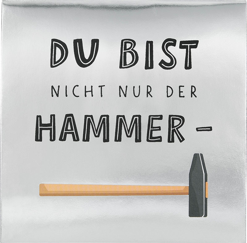 Bereits das Cover ist ein echtes Highlight: ein silberner Hintergrund mit einem Hammer und dem Spruch: Du bist nicht nur der Hammer.