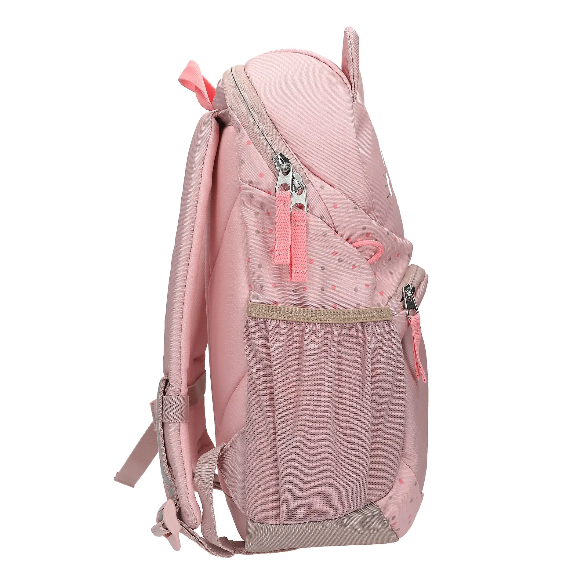 Das Herzstück des Rucksacks ist das niedliche Katzengesicht auf der Vorderseite, das mit seinen großen Augen, dem feinen Näschen und den rosigen Wangen sofort für gute Laune sorgt. Die applizierten, spitzen Katzenohren ragen frech über den Rand hinaus und verleihen dem Rucksack einen verspielten 3D-Effekt. Ergänzt wird die Optik durch ein dezentes, farblich abgestimmtes Pünktchen-Muster, das dem Rucksack eine besonders harmonische Note verleiht.