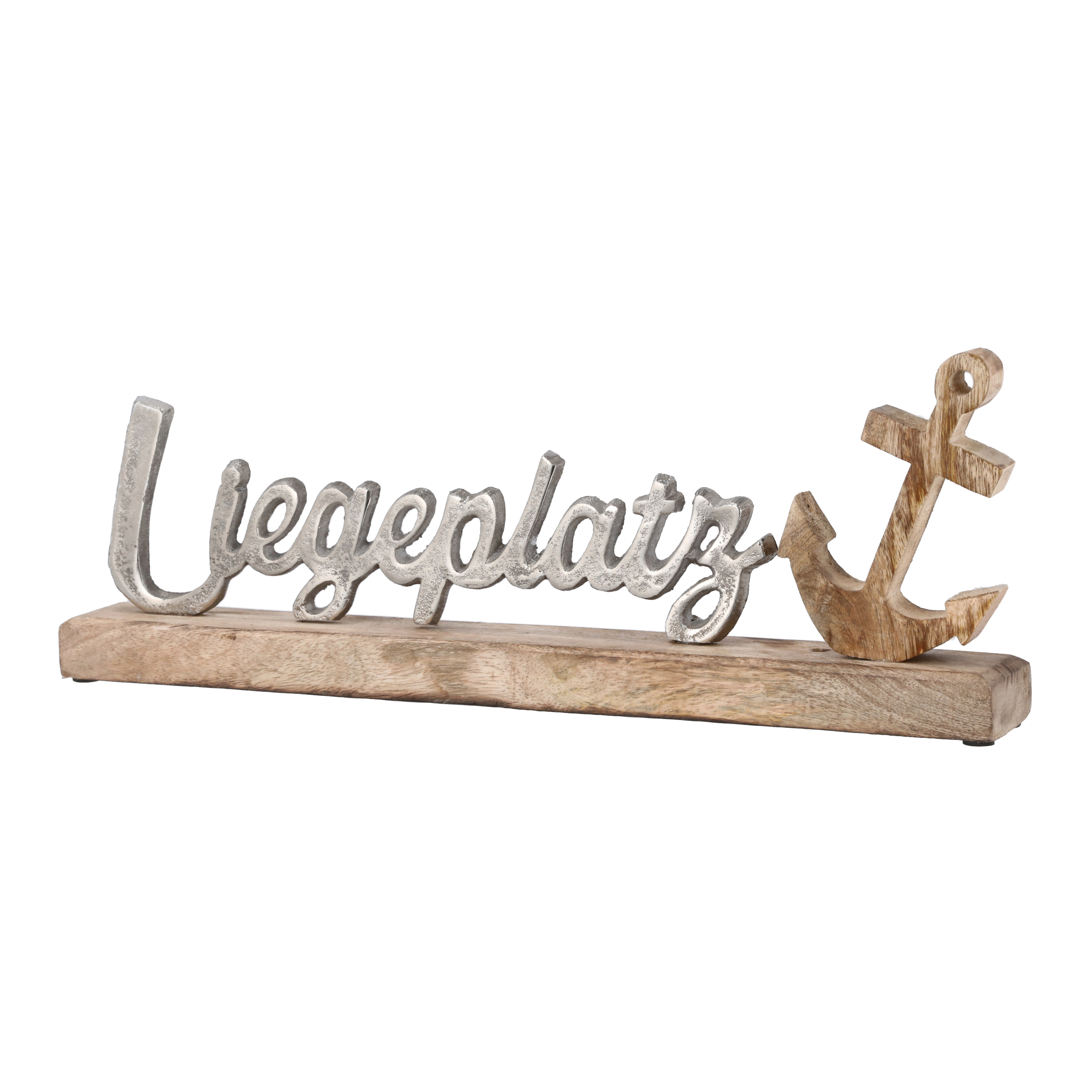 Deko-Schriftzug „Liegeplatz“ aus Aluminium auf Mangoholz-Sockel mit Holz – Anker – Ein stilvoller Hingucker für dein Zuhause