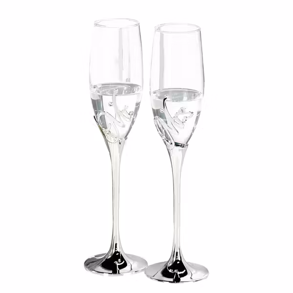 Geliefert werden die Schaumweingläser in einer edlen silbernen Geschenkverpackung!