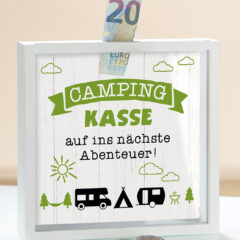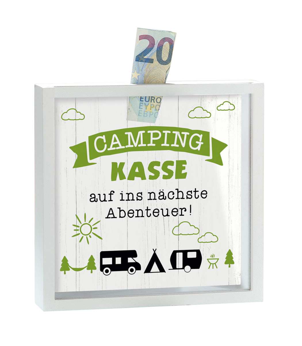 Verschenken Sie nicht einfach Geld. Verschenken Sie Wertschätzung. Und schenken Sie mit der Spardose “Campingkasse” mit Glasfront ein Stück liebevoller Momente, das lange Freude bereitet.
