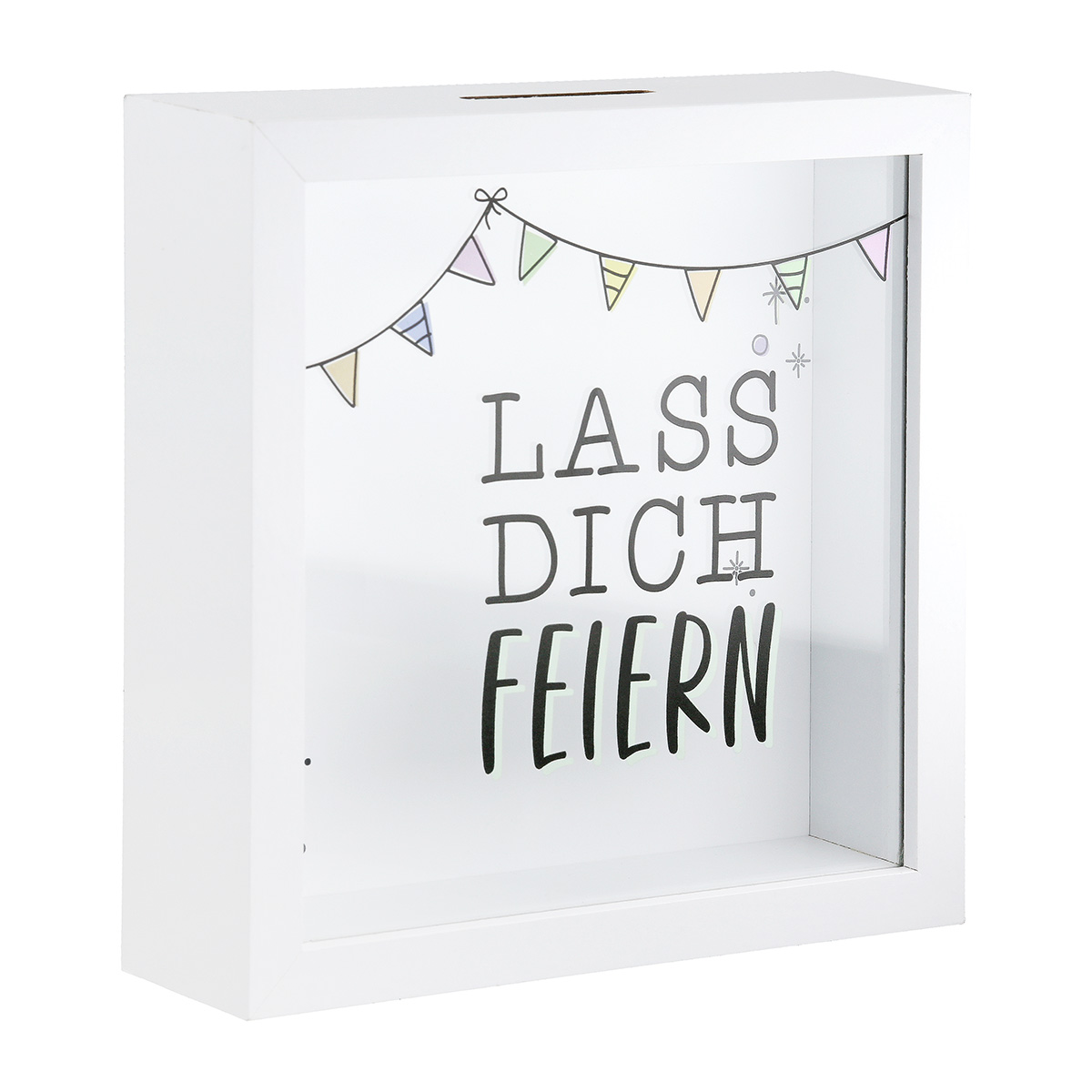 Die Spardose “Lass Dich Feiern” mit Glasfront ist jedoch mehr als eine Aufbewahrung für Geld. Sie ist eine Einladung zum Träumen. Sie ist ein Symbol für Wünsche, Ziele und kleine Freuden. Ob zur Hochzeit, zum Geburtstag oder einfach als besondere Aufmerksamkeit – mit dieser Geschenkidee überraschen Sie nicht nur, sondern berühren.