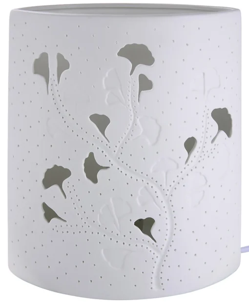 Mit der Tischleuchte ” Ginkgo ” holen Sie sich nicht nur eine elegante Lichtquelle, sondern auch ein tiefgründiges Symbol voller Bedeutung in Ihre Wohnräume. Diese besondere Tischleuchte aus hochwertigem Porzellan begeistert durch ihr kunstvoll ausgestanztes Ginkgo-Blattmotiv im trendigen Prickellook. Feine Blattstrukturen und ein harmonisches Punkte-Muster verbinden sich zu einem Design, das Leichtigkeit ausstrahlt und gleichzeitig Tiefe vermittelt. Denn der Ginkgo steht seit Jahrhunderten für Hoffnung, Widerstandskraft, Langlebigkeit und Frieden. Er symbolisiert Liebe und Freundschaft, aber auch die Einheit von Gegensätzen wie Yin und Yang. Genau diese Balance spiegelt sich im sanften Licht dieser Leuchte wider.