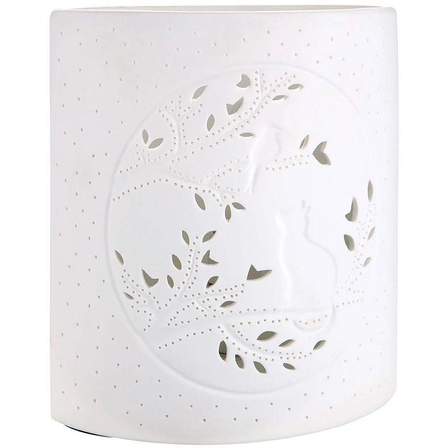 Gefertigt aus hochwertigem weißem Porzellan überzeugt die Tischleuchte durch ihre feine Oberfläche und ihre sanfte Lichtwirkung. Sobald Sie das Licht einschalten, scheint das warme Leuchten durch die präzisen Ausstanzungen des Motivs. Dadurch entstehen wunderschöne Licht- und Schattenspiele an Ihren Wänden. Gleichzeitig schafft das Licht eine behagliche Atmosphäre, die besonders am Abend für Entspannung sorgt. Ob im Wohnbereich, im Schlafzimmer oder im Eingangsbereich – diese Leuchte sorgt überall für ein wohnliches Ambiente.