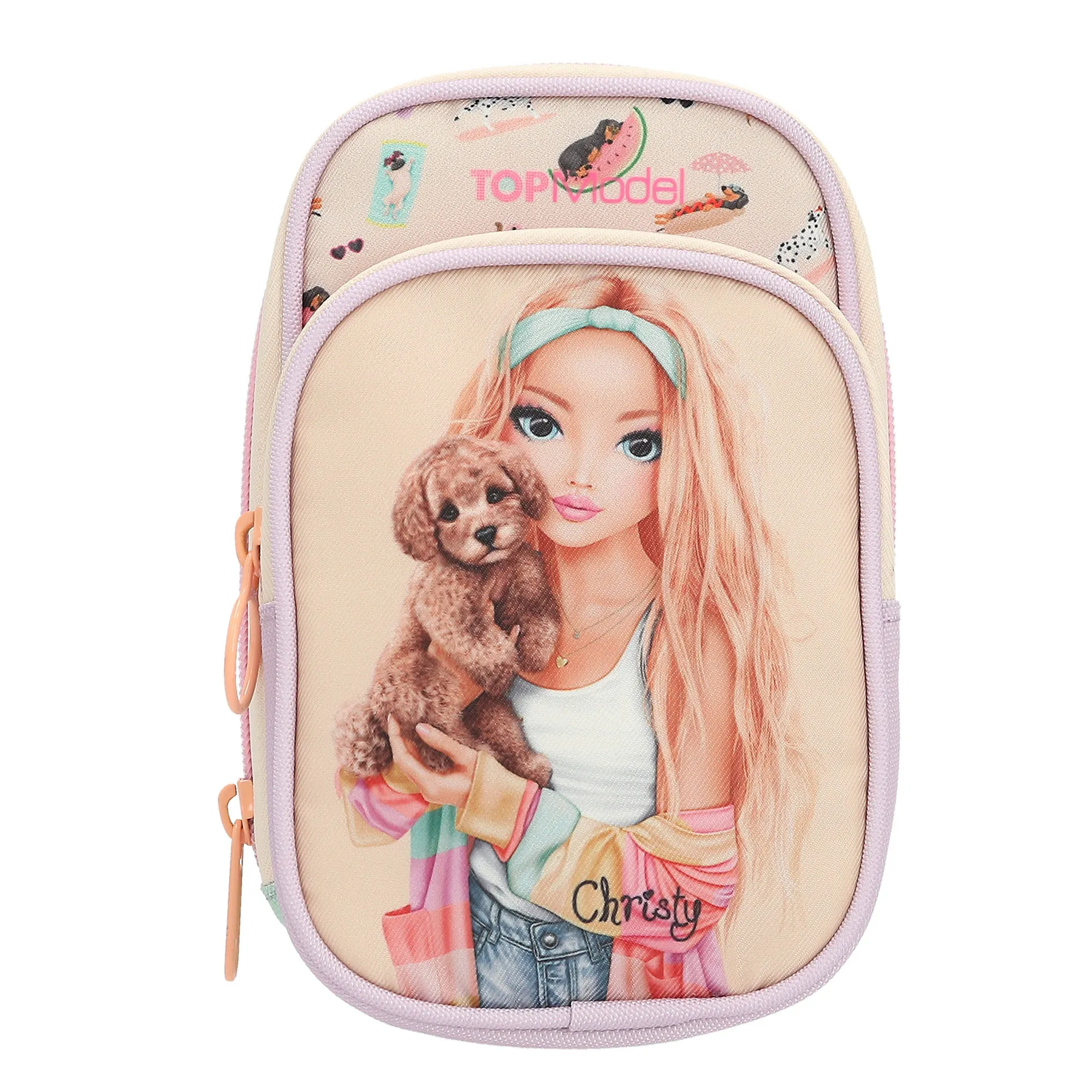 Ein absoluter Blickfang ist das großflächige Model-Motiv auf der Vorderseite: Das TOPModel Christy hält einen kuscheligen, braunen Welpen liebevoll im Arm. Doch das ist noch nicht alles, auf der oberen Tasche findet sich ein verspieltes Muster mit vielen kleinen, lustigen Hunden, die für gute Laune sorgen. Ob beim Gassigehen oder beim Treffen mit Freundinnen, dieses Design lässt die Herzen von Hundefans höherschlagen.