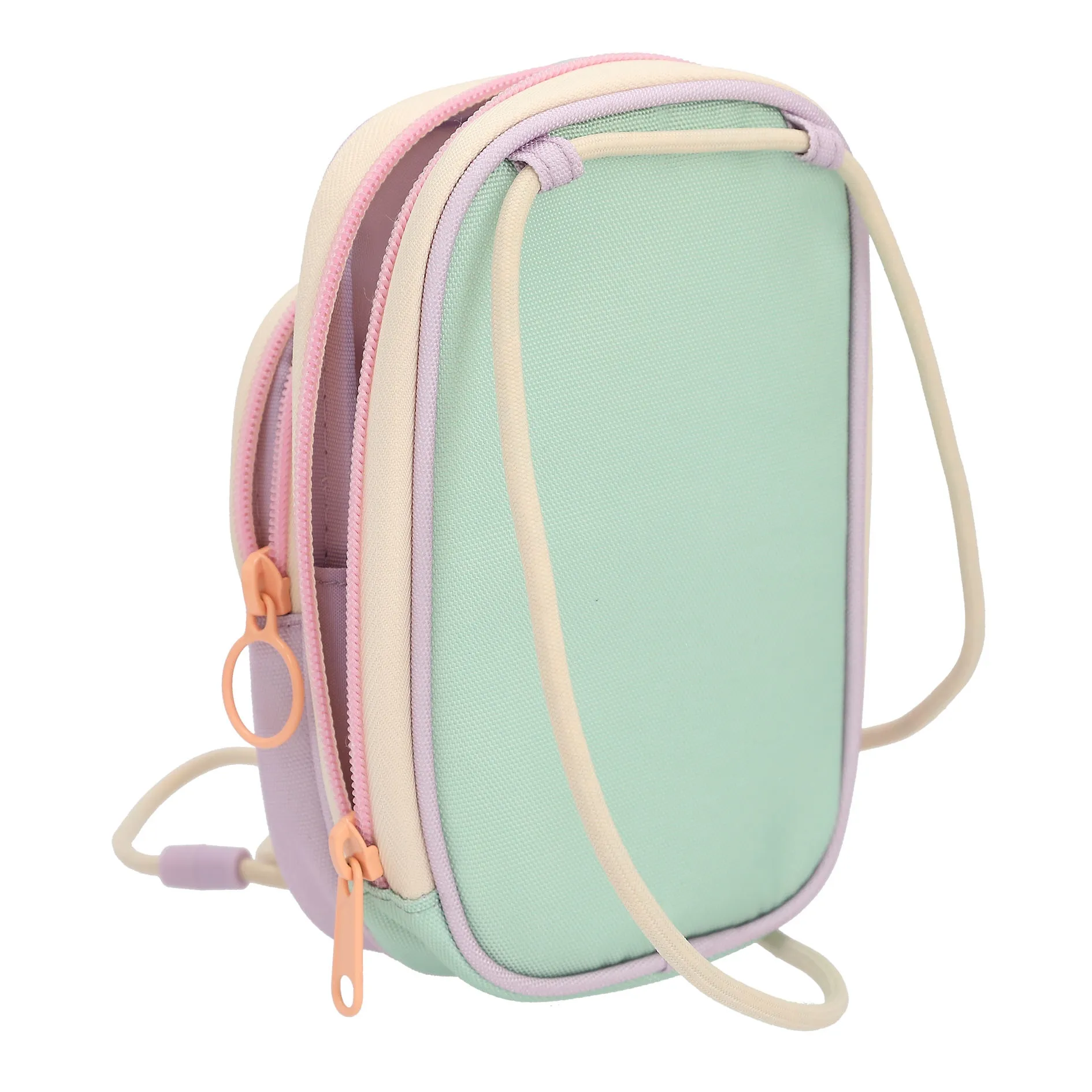 Die Tasche bietet mit ihren zwei Reißverschlussfächern überraschend viel Platz. Das große Hauptfach ist ideal für das Smartphone, während die aufgesetzte Vordertasche perfekt für Kleinigkeiten wie Taschentücher, etwas Taschengeld oder eine Fahrkarte geeignet ist. Gefertigt aus strapazierfähigem Polyester, ist die Tasche zudem robust genug für den täglichen Einsatz.