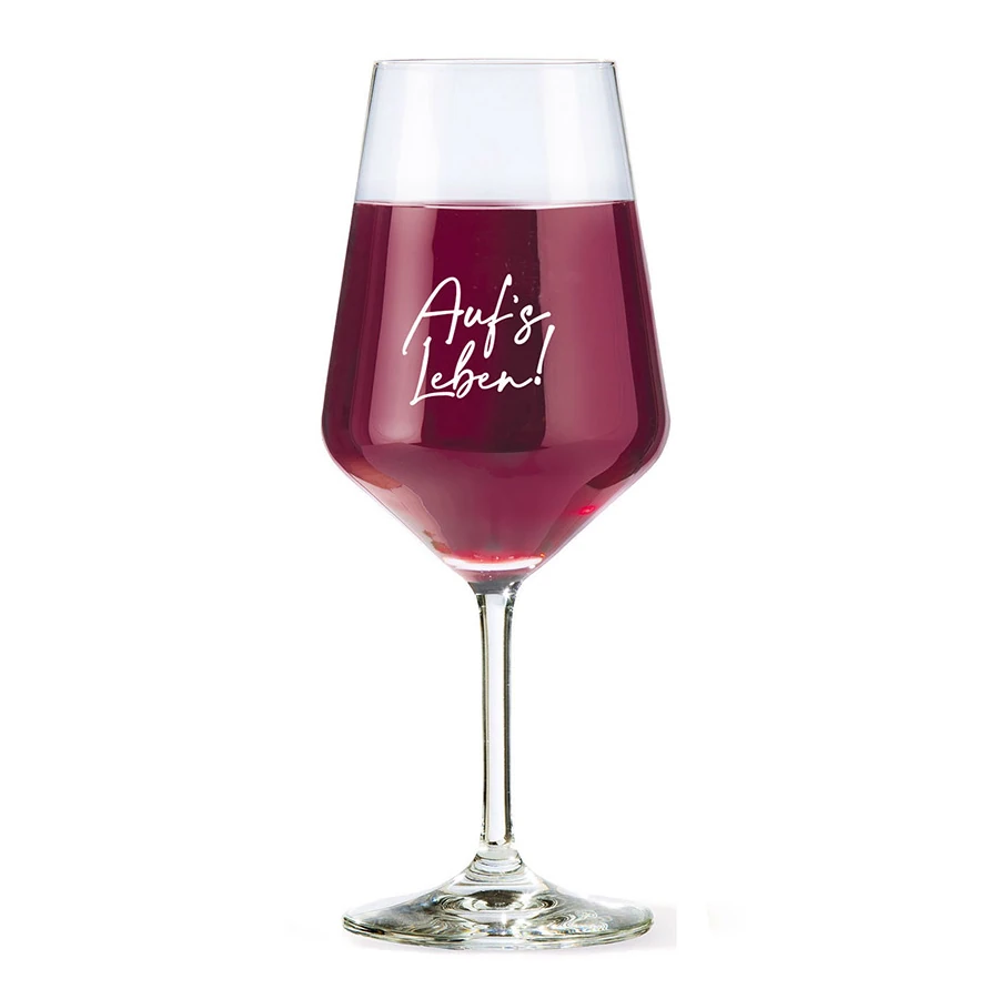 Weinglas mit Spruch „Auf’s Leben!“ – Genuss, der Freude macht