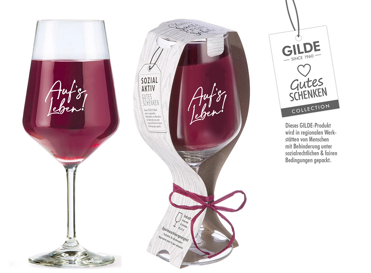 Der Spruch „Auf’s Leben!“ verleiht jedem Schluck einen besonderen Charme und erinnert daran, die kleinen Momente bewusst zu genießen. Sie können das Glas wunderbar mit einem ausgewählten Wein kombinieren, um ein rundum stimmiges Geschenkset zu gestalten. So verschenken Sie nicht nur ein Glas, sondern ein Erlebnis voller Freude und Stil.