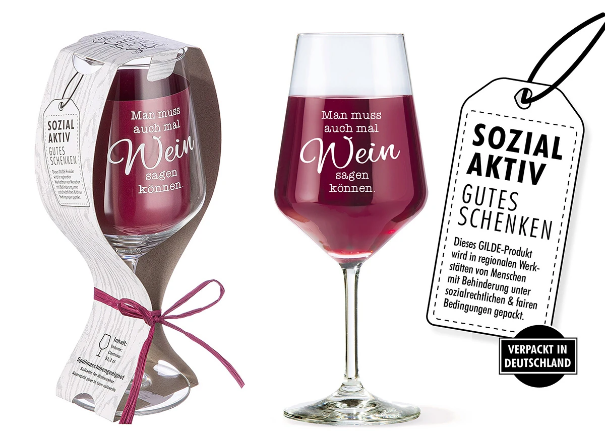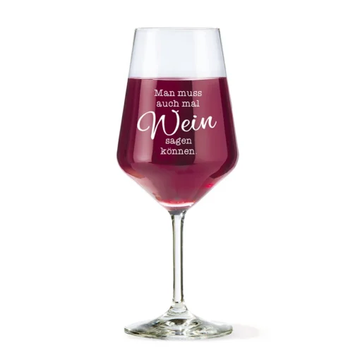 Der humorvolle Spruch „Man muss auch mal Wein sagen können“ setzt charmante Akzente. Jeder Schluck wird so zu einem kleinen Genussmoment. Sie können das Glas hervorragend mit einem ausgewählten Wein kombinieren und ein stimmiges Geschenkset gestalten. Dieses Weinglas schenkt nicht nur ein funktionales Glas, sondern ein Erlebnis.