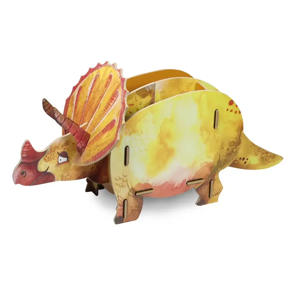 Die Spielzeugkiste Dino Triceratops verbindet Ordnung, Design und Fantasie. Sie schafft Platz, und gleichzeitig bringt sie Leben und Kreativität in jedes Kinderzimmer.