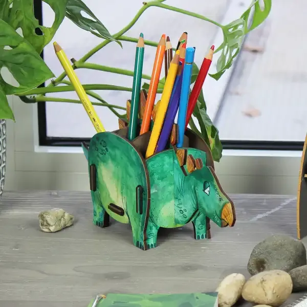 Doch die Stiftebox Dino Stegosaurus überzeugt nicht nur optisch, sondern auch funktional. Mit sechs praktischen Fächern bietet sie ausreichend Platz für Stifte, Pinsel, Lineale oder Scheren. So behalten Sie den Überblick, und gleichzeitig bleibt Ihr Arbeitsplatz ordentlich. Außerdem greifen Sie schneller zu Ihren Utensilien, weil alles übersichtlich sortiert ist.